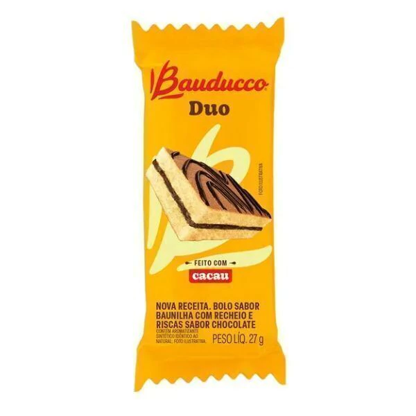O Bolinho Duo Chocolate Bauducco traz a combinação única de uma massa fofinha com um recheio irresistível, sendo uma fonte deliciosa de vitaminas e cálcio. Tudo isso num tamanho perfeito para ser levado na lancheira ou mochila.